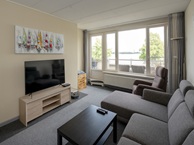 Door de royale glaspartijen in de woonkamer is het appartement erg licht en heeft het prachtig uitzicht over het weerwater. Het balkon die u kunt bereiken via de woonkamer is gelegen op het oosten. De open keuken met granieten aanrechtblad is uitgerust met een magnetron, oven, koelkast met daaronder een vriesgedeelte, keramische kookplaat en een afzuigkap. Naast de keuken is een praktische berg/provisiekast met opstelplaats van de mechanische ventilatie. De badkamer is uitgerust met een bad-douchecombinatie, wastafel, wastafelmeubel en aansluiting voor de wasmachine en de wasdroger. In totaal zijn er twee slaapkamers. In de kleine slaapkamer staat een opklapbed.