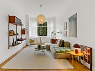 De ruime woon- en eetkamer is gescheiden door de originele ensuite met glas-in-lood schuifdeuren – een prachtige authentieke eyecatcher. Aan de achterzijde ligt de moderne keuken voorzien van inbouwapparatuur zoals gaskookplaat, afzuigkap oven, vaatwasser, koel/vriescombinatie en (aansluiting voor) wasmachine. Vanaf de keuken toegang tot het balkon, dat tevens bereikbaar is vanuit de eetkamer en één van de slaapkamers. Hier kunt u heerlijk buiten zitten en genieten van de rustige ligging.
