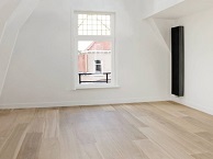 U komt binnen in de woonkamer met originele balken aan de voorzijde van de woning. Door de hoge plafondhoogte en de extra ramen is het een zeer lichte woonkamer. De semi-open designkeuken ligt aan de achterzijde van de woning en is voorzien van alle benodigde apparatuur. Hier vindt u tevens de toegang tot het fantastische zonnige dakterras van 30m2.