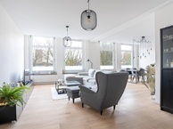 Vanuit de entree bereikt u de riante lichte living met een open keuken voorzien van een moderne keukeninrichting met inbouwapparatuur. Direct naast de keuken is een praktisch inloop- voorraadkast gesitueerd met wasruimte inclusief aansluitingen ten behoeve van wasapparatuur.