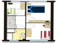 Via de overloop zijn 3 ruime slaapkamers, de badkamer met ligbad, douche, vaste wastafel en 2e toilet bereikbaar.