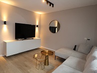 Het appartement heeft twee slaapkamers, beide rustig gelegen aan de achterzijde. De tweede slaapkamer is ideaal als thuiskantoor of logeerkamer. De moderne open keuken is voorzien van inbouwapparatuur, waaronder een oven, keramische kookplaat, vaatwasser, koelkast en vriezer.