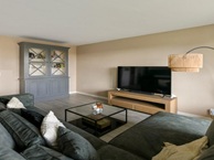 De zeer ruime open woonkamer en keuken bevinden zich aan de achterzijde van het appartement. Er zijn meerdere zitgedeeltes. De moderne keuken is voorzien van alle moderne inbouwapparatuur, zoals een oven/magnetroncombinatie, vaatwasser, inductiekookplaat.