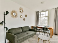 Toegang via de gemeenschappelijke trap op de tweede verdieping. Het appartement ligt op de hoek en heeft daardoor veel natuurlijk licht. Er zijn twee slaapkamers en het appartement is geschikt om te delen. Beide slaapkamers hebben een tweepersoonsbed en een kledingkast. Aan de voorzijde is een Frans balkon. De keuken is uitgerust met een vaatwasser, een koelkast, een inductiekookplaat en een combi-oven/magnetron. De badkamer heeft een ligbad, een douche, een toilet en een dubbele wastafel met onderkast.