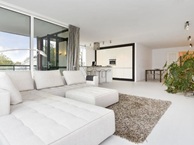 Indeling: gezamenlijke entree, deur naar de hal, lift naar de vierde verdieping, overloop, deur naar het appartement, ruime hal met toegang tot het toilet, ruime berging en toegang via openslaande deuren tot de ruime woonkamer van ca. 60 m² met toegang tot een ruim overdekt balkon en aan de rechterkant een prachtige luxe keuken met kookeiland en alle inbouwapparatuur. Via de hal bereikt u de hoofdslaapkamer van ca. 21 m², een extra slaapkamer aan de linkerkant van ca. 10 m² en een zeer luxe badkamer met sfeerverlichting, dubbele wastafel, inloopdouche en ruim bad.