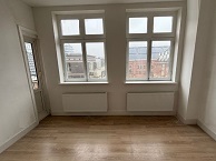 Gelegen op de derde verdieping bevindt zich dit lichte appartement met een praktische indeling. Aan de voorzijde ligt de woonkamer, gekenmerkt door grote raampartijen die zorgen voor veel natuurlijk licht en een ruimtelijk gevoel. De open keuken sluit hier direct op aan en is voorzien van een oven, koelkast en gaspit.