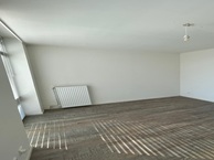 De woonkamer is v.v. grote raampartijen waardoor het extra licht is in het appartement. De keuken is v.v. spoelbak + kraan, 4-pitsgasfornuis en afzuiginstallatie.