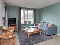 Je betreedt de woning middels de aan de voorzijde gelegen toegangsdeur naar de centrale hal. De hal is voorzien van een vaste kastenwand, verhoogde opstelplaats voor de wasmachine en droger en een toiletruimte met wandcloset en fonteintje. De woonkamer, voorzien van een plavuizenvloer met vloerverwarming, is gelegen aan de achterzijde. In deze ruimte bevindt zich ook de open keuken met nette inbouwkeuken, in beuken kleurstelling, voorzien van keramische kookplaat, oven, vaatwasser en koelkast. Vanuit de eethoek biedt een loopdeur toegang tot het terras met een grandioos ver gezicht over het Twentse landschap. Tevens bevinden zich op de begane grond ook de ruime slaapkamer en de eigentijdse badkamer welke is uitgerust met een ligbad, douchehoek, wastafel en wandcloset.