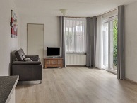 De woonkamer is ruim van opzet, heeft veel lichtinval en is op meerdere manieren in te richten. De kamer is voorzien van een moderne laminaatvloer en biedt tevens middels schuifpui toegang tot de tuin. De open keuken ligt aan de achterzijde van de woning en is ingericht in een hoek opstelling. De keuken beschikt over een koel-vriescombinatie, oven, keramische kookplaat en mechanische afzuiging. Via de woon/eetkamer is er toegang tot de slaapkamer. De slaapkamer, v.v. een grote garderobekast, is van een goed formaat en ca. 15 m2 groot. De en-suite badkamer is volledig betegeld. Er is een royale douchecabine, een ligbad en een wastafelmeubel.