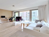 Via schuifdeuren bereik je het terras over de volle breedte van het appartement, een heerlijke plek om te ontspannen en te genieten van de zon.