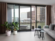 Het balkon biedt een gezellig zitje met een prachtig uitzicht over het Tolhuiskanaal, ’t IJ en de ADAM-toren is zelfs te zien. Daarnaast is er een beveiligde fietsenstalling naast het gebouw.